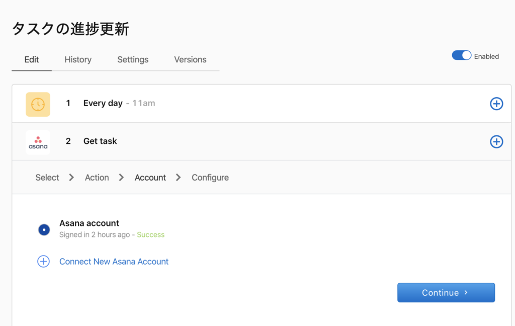 - Asanaにログインします。ログインできたら「Continue」を押します。