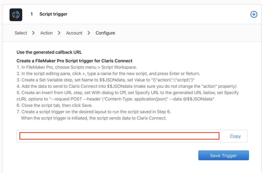 - 実行したら、Save Triggerボタンが押せるようになります。ボタンを押したらこのステップの設定が完了になります。