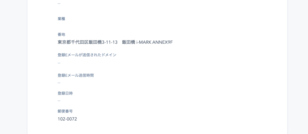 顧客名、郵便番号、電話番号、住所、担当者、メールアドレスのどれかが入れば Hubspot 側に新規顧客を登録します。