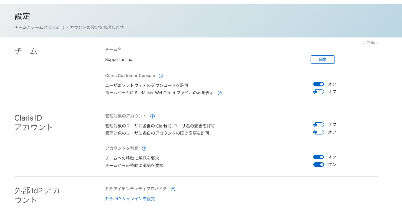 - Claris Customer Console の設定(ソフトウェアのダウンロード許可、WebDirectファイルの表示)