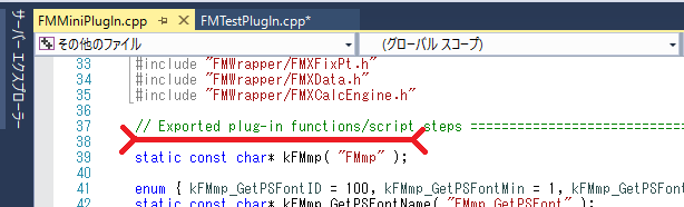 「FMTestPlugIn.cpp」をダブルクリックすると、ソースが表示されます。