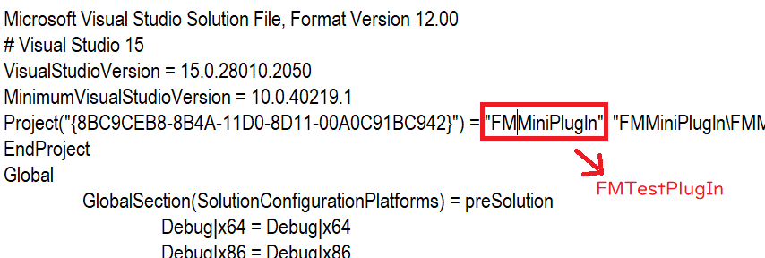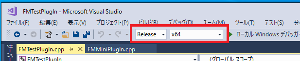 ファイル名を変更した、「FMTestPlugIn.sln」を VisualStudio で開きます。