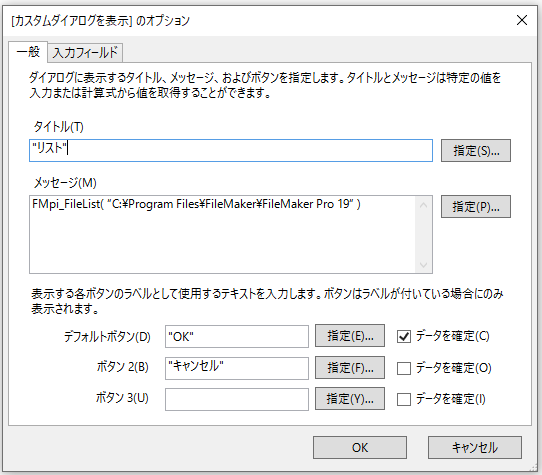 「カスタムダイアログを表示」の「計算式の指定」ダイアログを表示させます。