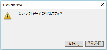 レイアウト削除の確認ダイアログが表示されました。