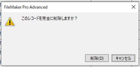レコード削除の確認ダイアログが表示されました。