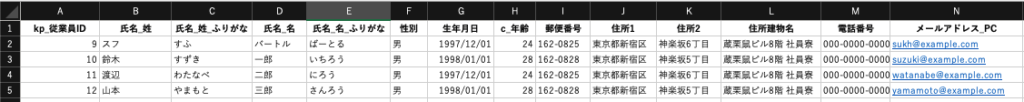 インポートする Microsoft Excel 形式データは以下のデータになります。