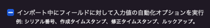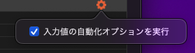 ⑨「入力値の自動化オプションを実行」を選択できます。このマークは、オプションが選択されていることを示すマークになります。マークをクリックして、チェックを「オン」「オフ」にすることができます。
