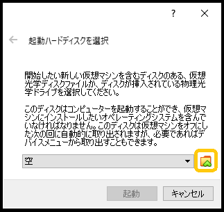 ②「起動ハードディスクを選択」ダイアログが表示されるのでフォルダアイコンボタンをクリックします。