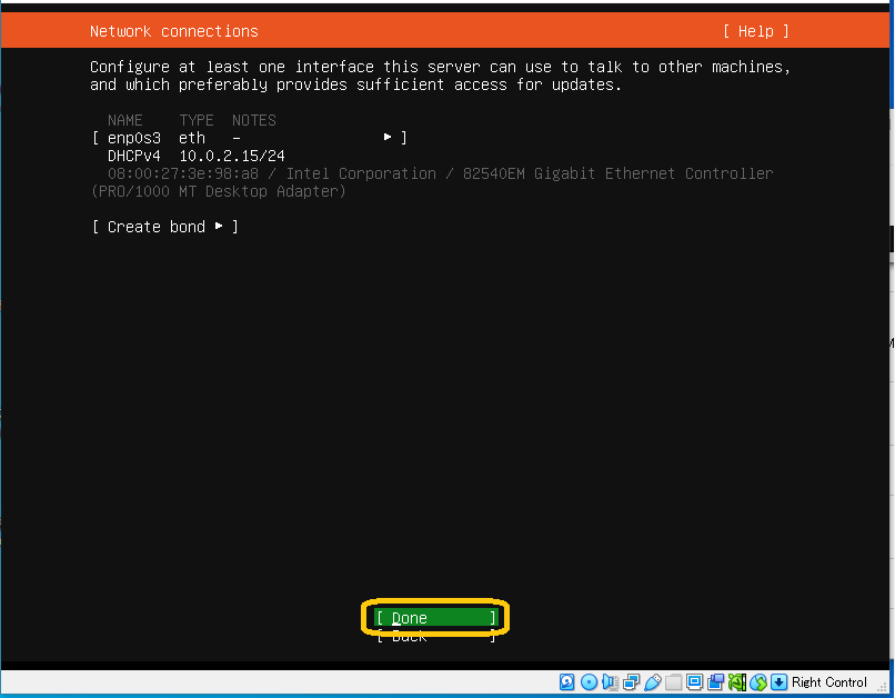 ⑩ネットワーク接続の設定はとりあえず「Done」を選択します。