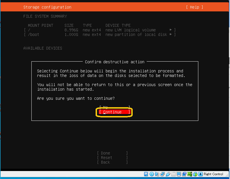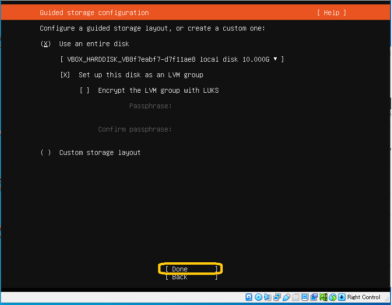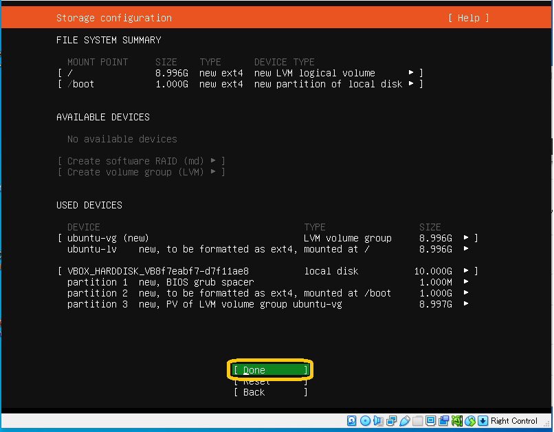 ⑭ストレージの設定ですが、自動で設定してくれるのので「Done」を押します。