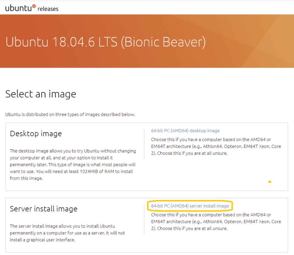 Ubuntuをダウンロードします。http://releases.ubuntu.com/bionic/