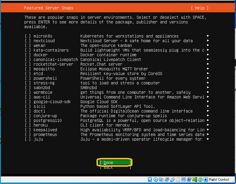 ⑱「Featured Server Snaps」画面では、何も変更せず「Done」を押します。