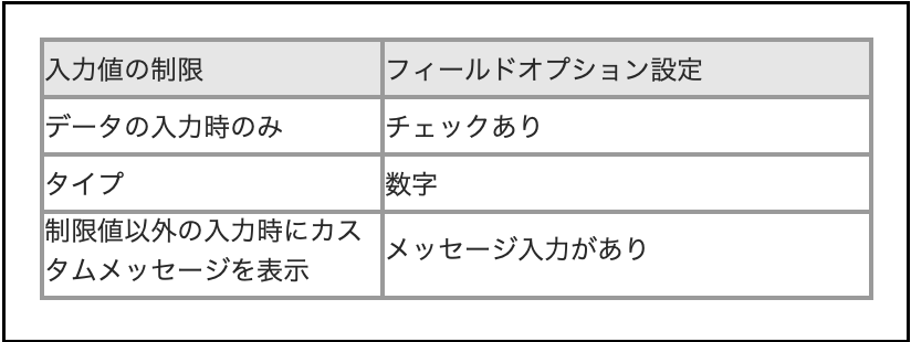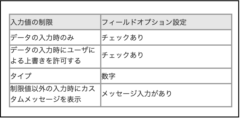 前回は、フィールドオプションの「入力値の自動化」について触れました。今回は、引き続きフィールドオプションの「入力値の制限」について学びたいと思います。