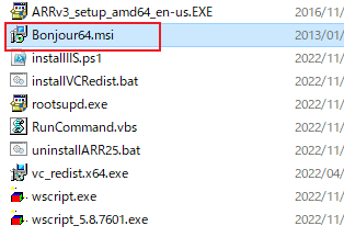 「Bonjour」のインストールは、FileMaker Server のインストーラからインストール可能なのですが、「Bonjour」のみのインストールも可能です。ファイルはインストール用ファイルが解凍された中にあります。