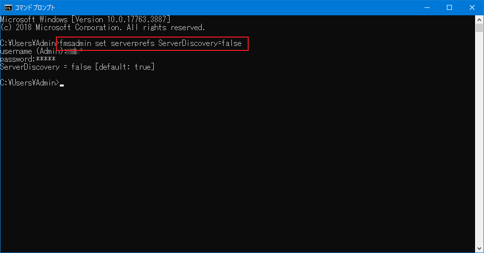 と指定します。usernameとpasswordをたずねられるのでAdminConsoleにログインするものを入力します。