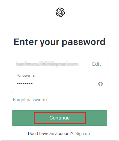3. パスワード入力欄にパスワードを入力し、「Continue」ボタンを押します。