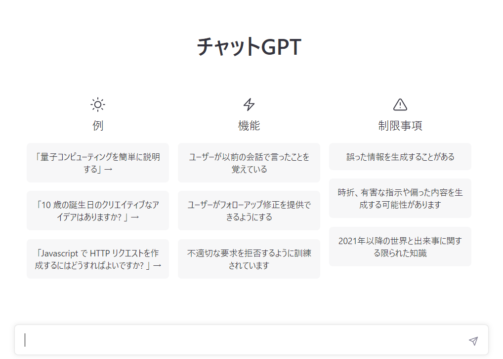 ChatGPT のウェブサイトがありますのでログインして(会員登録が必要です。)(https://chat.openai.com)