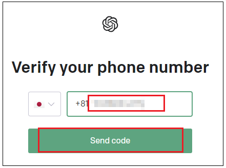6. 「Verify your phone number」画面が表示されますので「電話番号」を入力し、「Send code」ボタンを押します。
