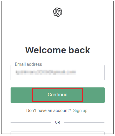 4. 「Welcome to OpenAI」画面が表示されますので、右上の丸いアイコンをクリックして表示される、