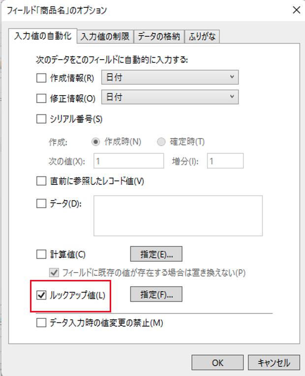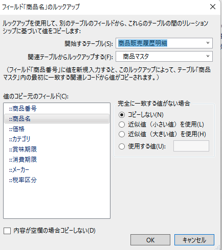 ※ルックアップはリレーションシップを使って別テーブルから値をコピーできる機能です。
