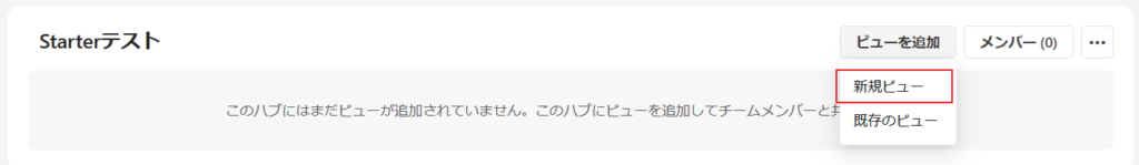 ●作成されたハブに「ビュー」を追加します。「ビューを追加」ボタンを押してから「新規ビュー」を選択します。