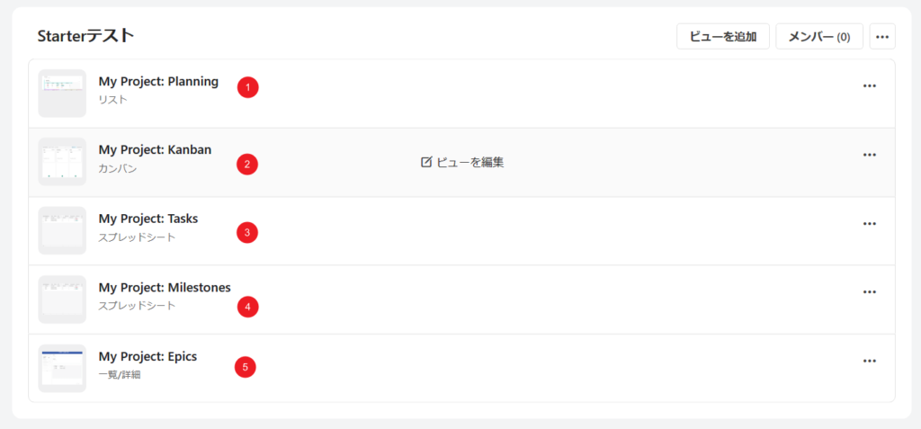 Starterビューで作成される「ビュー」は5つあります。