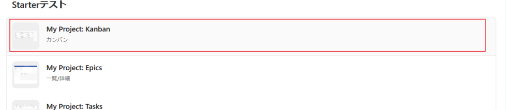 ●「カンバン」ビューをクリックします。他のビューを見たい場合はそのビューをクリックします。