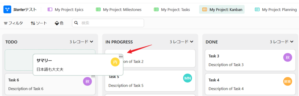 ●「タスクスプレッドシート」で行った変更はプランニングビューおよびカンバンビューにも表示されます。