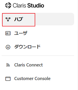 ●「Claris Studio」を起動して左側のパネルから「ハブ」を選択します。次に「新規ハブを作成」ボタンを押します。