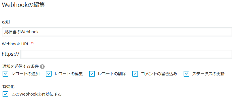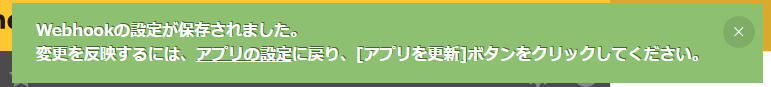 ●「Webhook URL」に控えておいたURLを入力して「保存」ボタンをクリックします。
