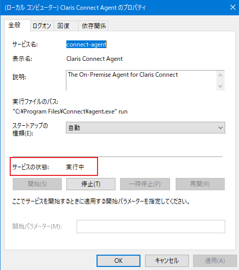 ●サービスを確認して「Claris Connect Agent」が起動しているか確認します。