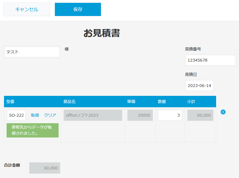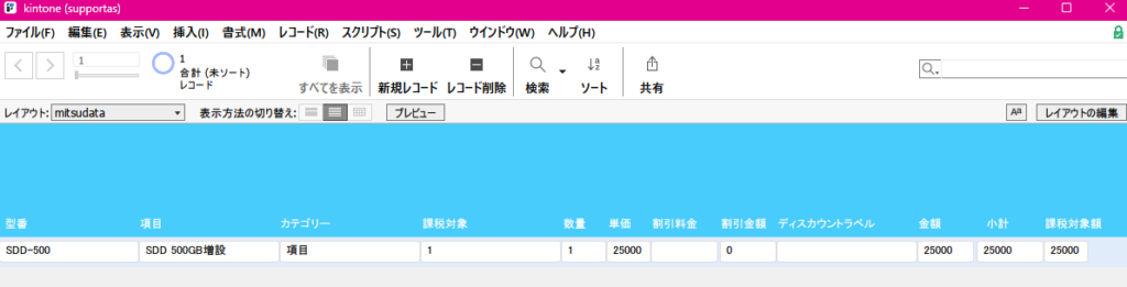 では実際に kintone の見積に明細を追加してみましょう。動きとして下記となるはずです。