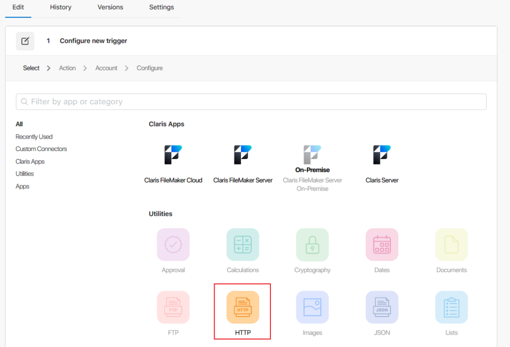 ●Utilitiesの一覧から「HTTP」をクリックします。