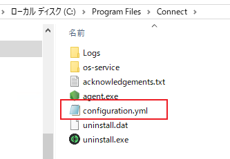 C:\Program Files\Connectフォルダの「configuration.yml」をメモ帳などのエディタで開きます。