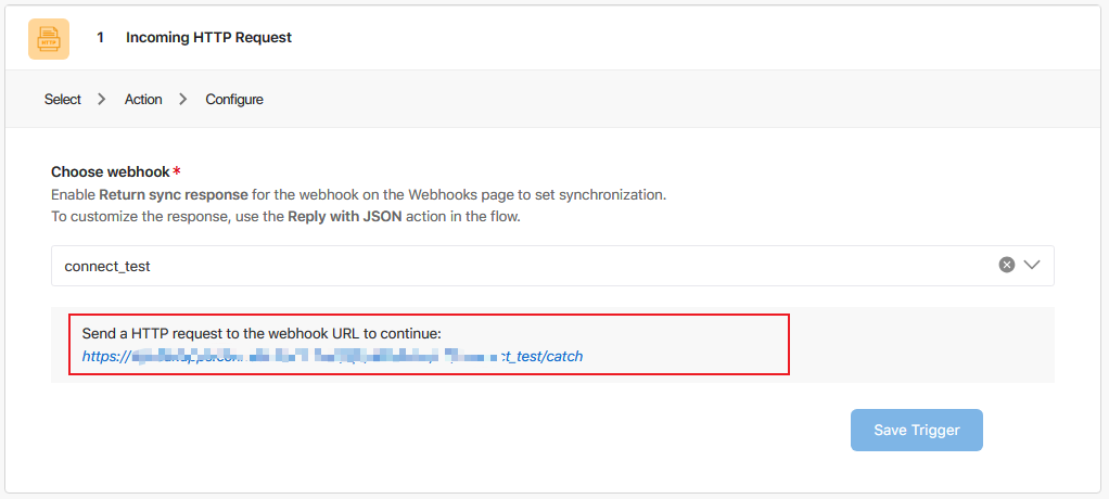 「Save Trigger」ボタンが押せない状態ですが、画面はこのままで kintone のWebhookの設定をします。