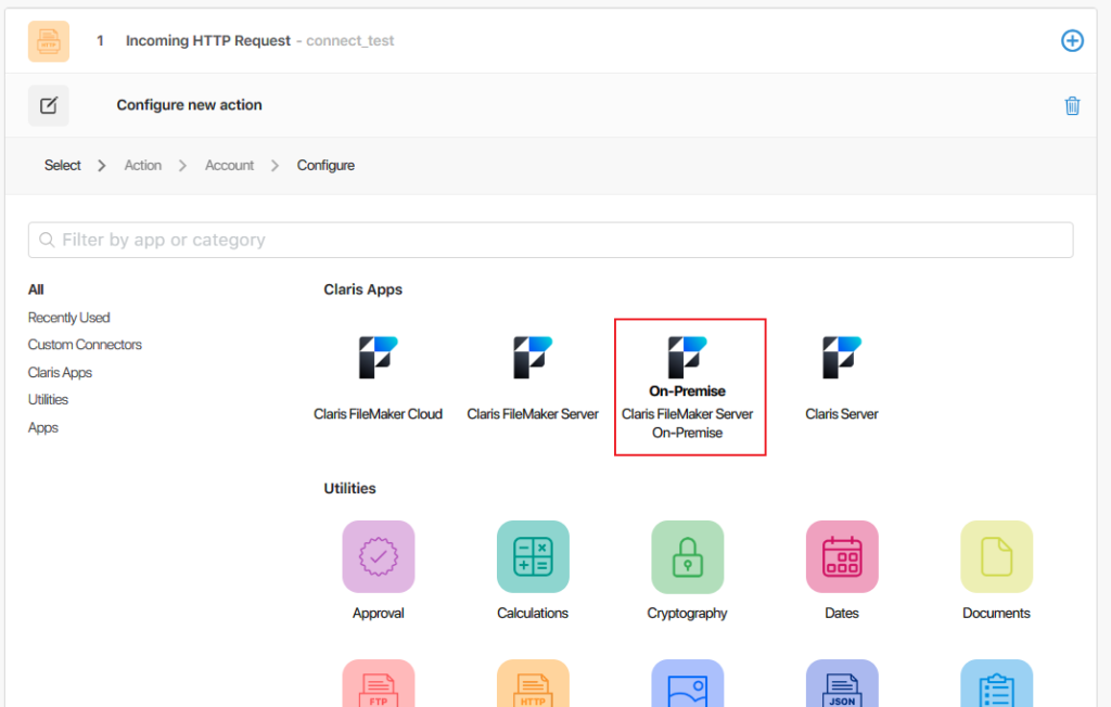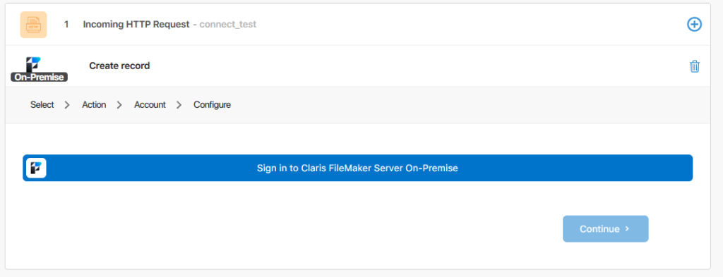 オンプレミスの FileMaker サーバに対しては Claris Connect からダウンロードする「On-Premise Agents」をインストールしておかないといけません。