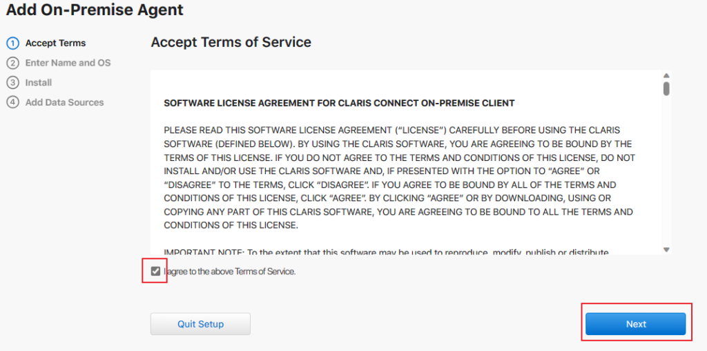 オンプレミスの FileMaker サーバに対しては「On-Premise Agents」をインストールしておかないといけません。