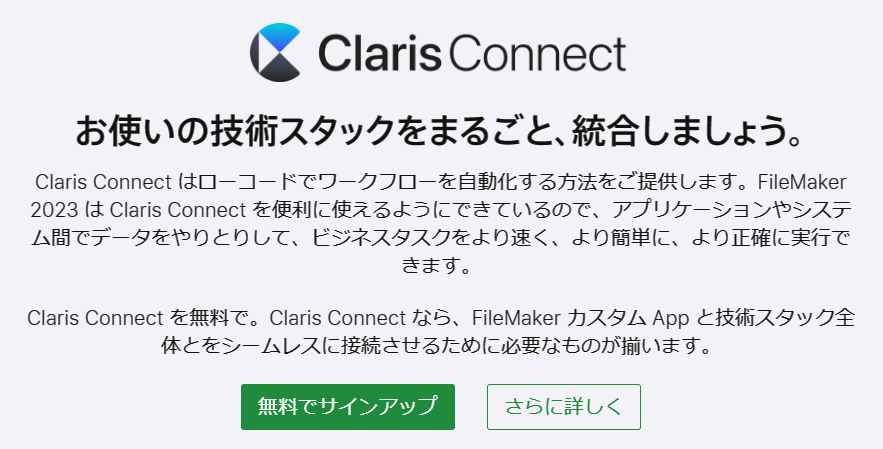 Claris から「Claris Connect」の無償利用枠の提供が開始されました。