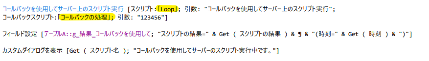 この「コールバックを使用してサーバー上のスクリプト実行」は、サーバーでの処理が完了した時に別途用意しておいた2番目の「コールバックスクリプト」をクライアント側で実行させることが可能となります。