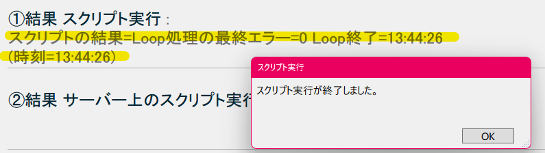 サーバーで実行させたいスクリプト「Loop」での処理結果を知る方法について