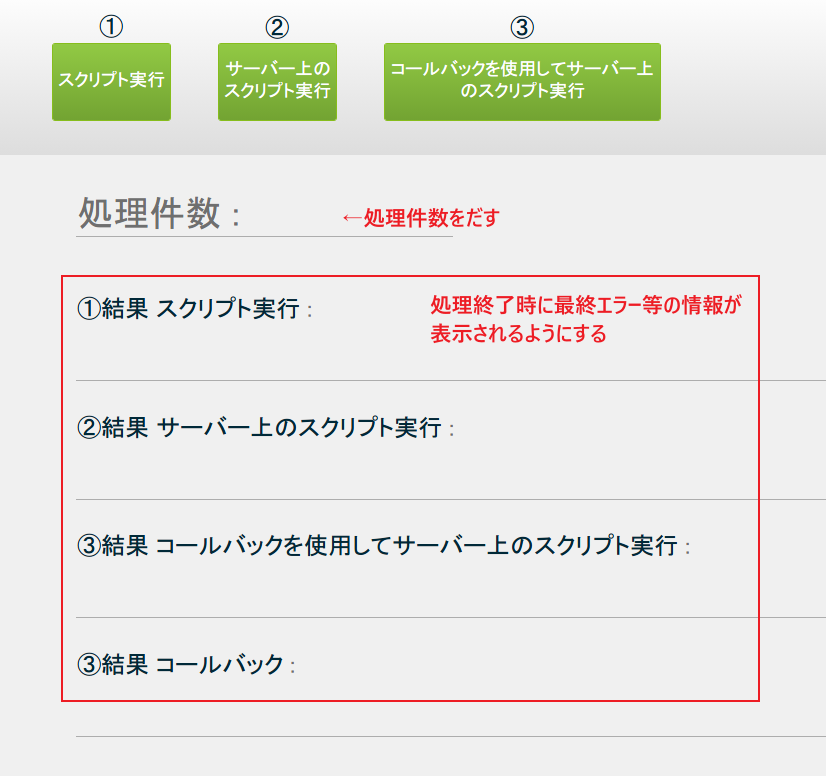 さっそく、③「コールバックを使用してサーバー上のスクリプト実行」ボタンを押してみましょう。処理件数は10000件に設定して実行してみます。