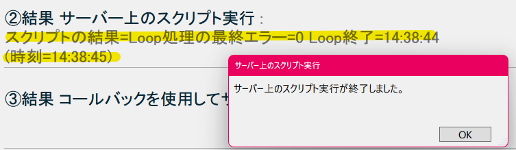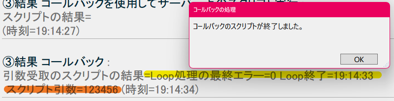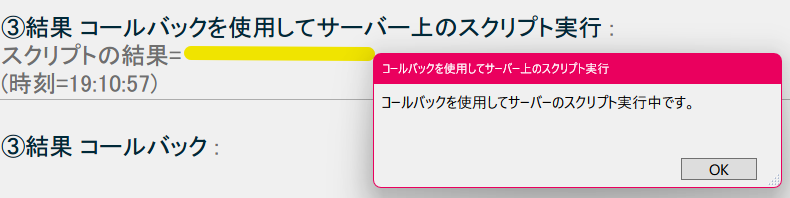 次に、③「コールバックを使用してサーバー上のスクリプト実行」を試してみます。
