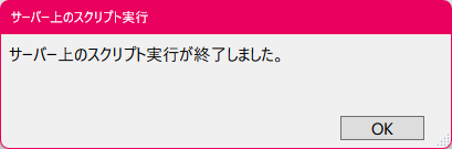 そして、サーバーで実行させているスクリプトが終了した時に、「カスタムダイアログ」でメッセージを表示してユーザーに完了を知らせたり、後続の処理を記述したりすることでいろいろなことが可能になりました。ぜひ、お試しください。