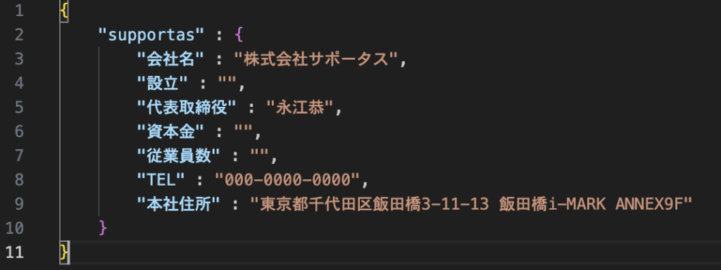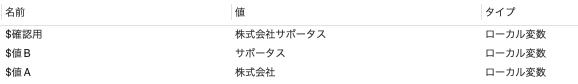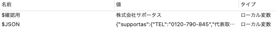 上手くいくと株式会社サポータスと値が設定されているはずです。