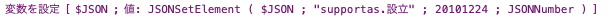 JSONSetElement(JSONオブジェクト; キー; 値; 値のタイプ)