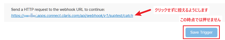 この時点では「Save Trigger」ボタンを押して保存することができません。保存するには、実際にテストのリクエストを送信する必要があります。