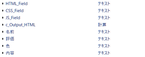 (名前、評価、色、内容のフィールドはなくてもかまいません)