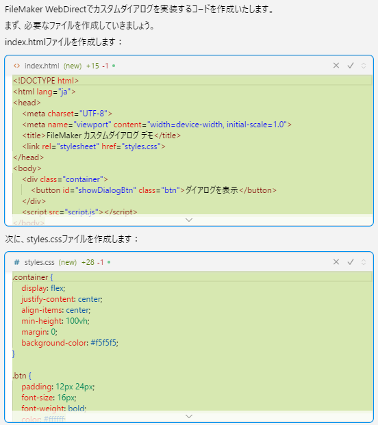 AIは親切にスクリプトの内容も指示してくれたのでその内容に従って作成していきます。