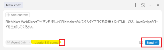 1. New chatに下記のように入力してSendボタンをクリックします。