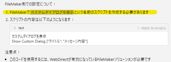 3.生成された下記の内容をFileMaker Proにコピーして貼り付けします。